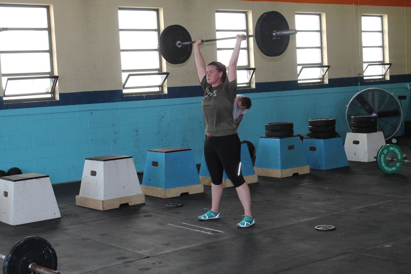 CrossFit tonight was snatch progressions and 5 rounds of 200m row, 3 hang power snatches (55#) and 7 overhead squats (55#) followed by two minutes rest. I finished in 15:40, the point was to do it well, not fast. Overhead squats aren't my favorite, I really need to work on my flexibility.